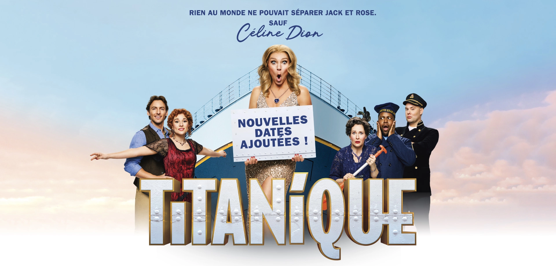 Quand la musique de Céline Dion épouse le grand succès du film Titanic, onze fois couronné d’un Oscar®, vous obtenez TITANIQUE, un délire musical qui transforme l’une des plus grandes histoires d’amour de tous les temps en une fantaisie théâtrale complètement déjantée.